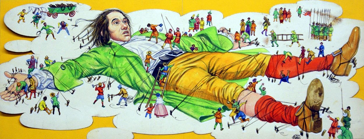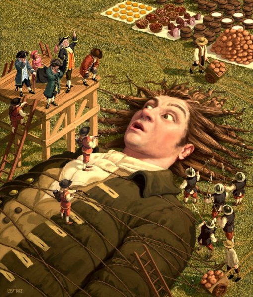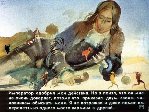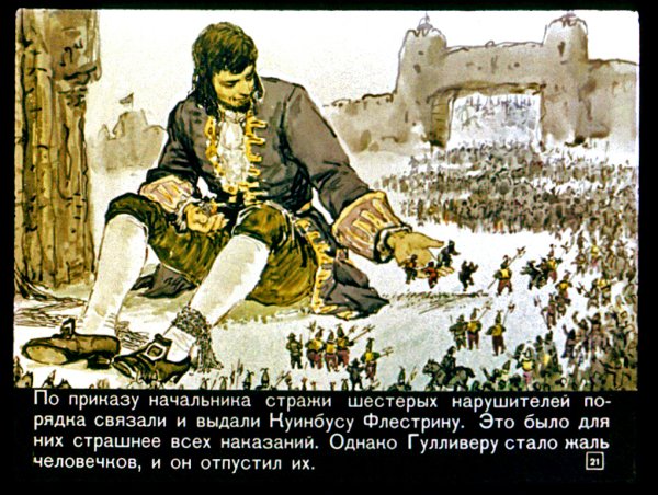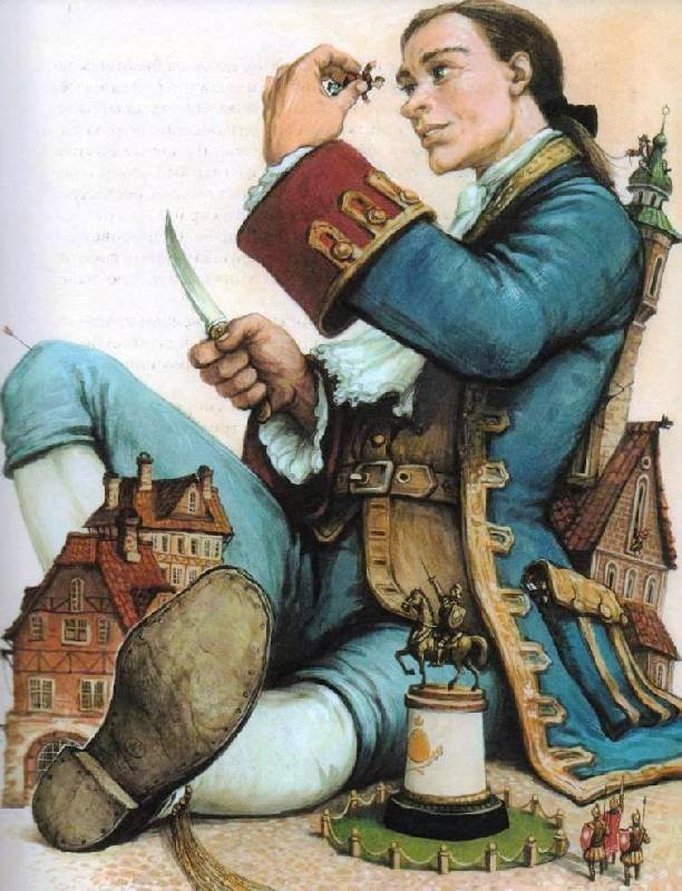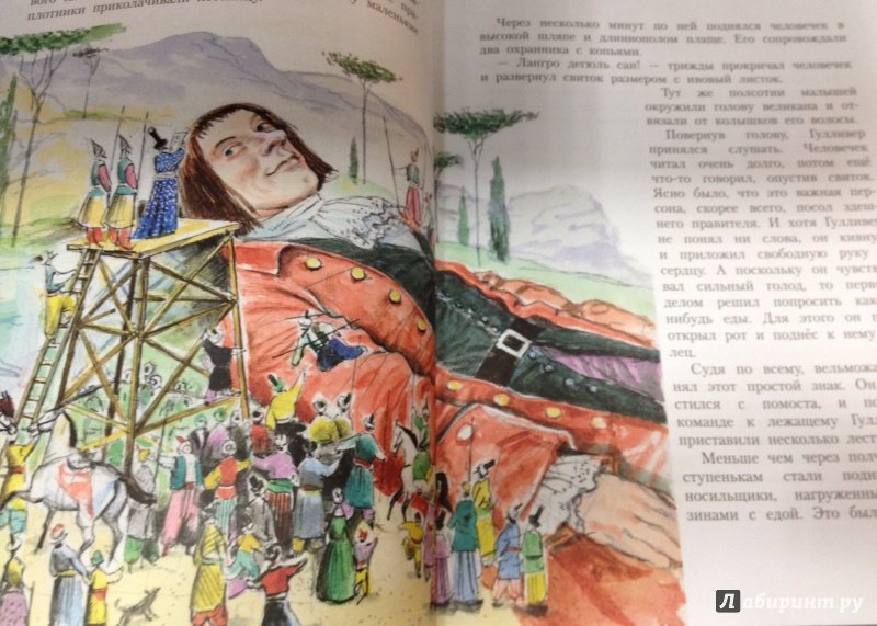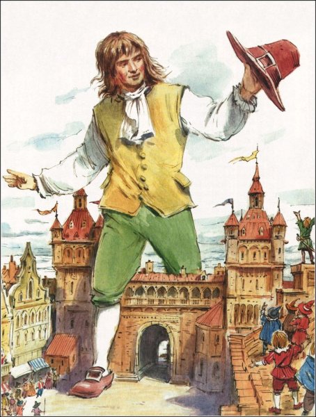 Иллюстрация к сказке "Гулливер в стране лилипутов" является великолепным произведением художественного искусства. Она передает удивительный и фантастический мир, в котором оказывается главный герой - Гулливер. На рисунке можно увидеть маленьких лилипутов, окружающих гигантского путешественника, что создает эффект драматичности и необычности. Иллюстратор сумел передать детализированные элементы одежды и архитектуры Лилипутии, что позволяет зрителю полностью погрузиться в этот удивительный мир. Большой талант художника выражается в мастерстве передачи эмоций и настроения персонажей, делая их живыми и реалистичными. В целом, иллюстрация к сказке "Гулливер в стране лилипутов" привлекает внимание своей красотой, тщательной проработкой деталей и способностью захватить воображение зрителя.