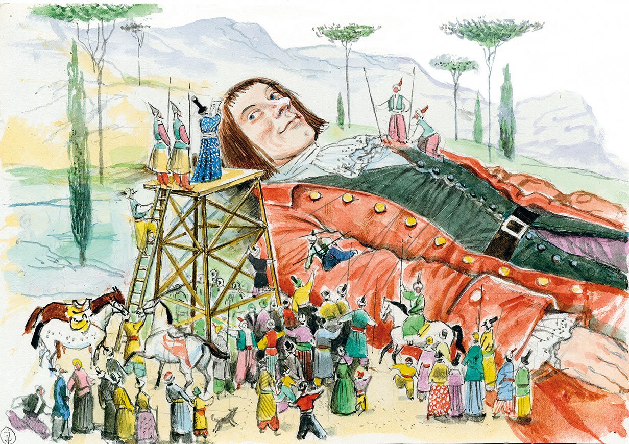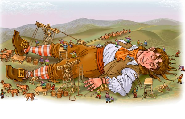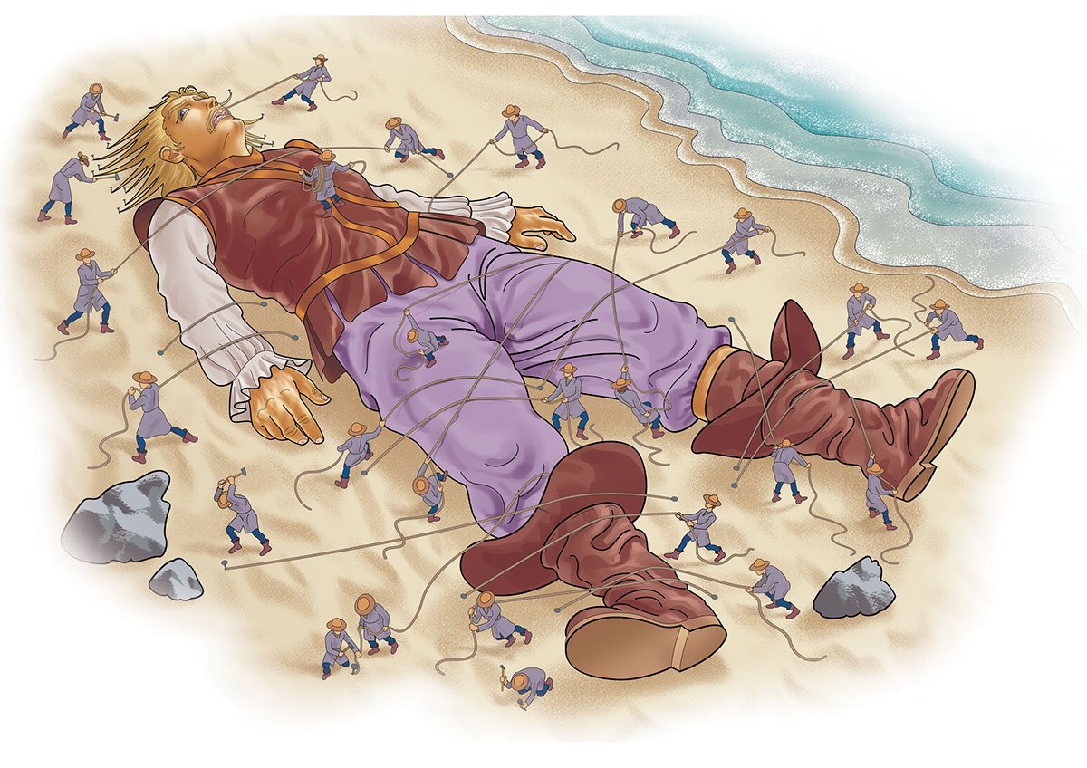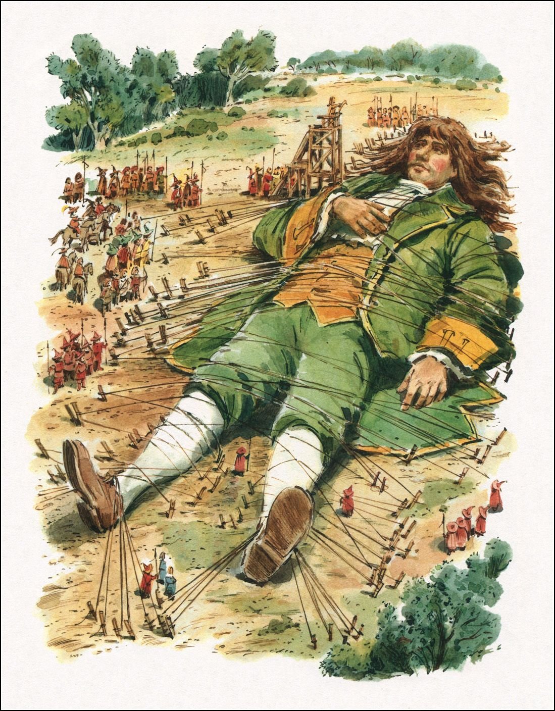 Иллюстрация к сказке "Гулливер в стране лилипутов" является великолепным произведением художественного искусства. Она передает удивительный и фантастический мир, в котором оказывается главный герой - Гулливер. На рисунке можно увидеть маленьких лилипутов, окружающих гигантского путешественника, что создает эффект драматичности и необычности. Иллюстратор сумел передать детализированные элементы одежды и архитектуры Лилипутии, что позволяет зрителю полностью погрузиться в этот удивительный мир. Большой талант художника выражается в мастерстве передачи эмоций и настроения персонажей, делая их живыми и реалистичными. В целом, иллюстрация к сказке "Гулливер в стране лилипутов" привлекает внимание своей красотой, тщательной проработкой деталей и способностью захватить воображение зрителя.