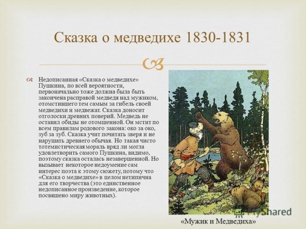 Иллюстрация к сказке о медведихе – это визуальное изображение, которое помогает воплотить в жизнь удивительные приключения главного героя. Она позволяет читателю окунуться в мир сказки и представить себе его ярко и наглядно. Иллюстрации могут передавать различные эмоции и настроение, создавая уникальную атмосферу сказочной истории. Красочные и детализированные рисунки медведихи в ее забавных и занимательных моментах делают иллюстрацию привлекательной для читателей всех возрастов. Она становится неотъемлемой частью сказочного произведения, подчеркивая его основные темы и идеи. Иллюстрация к сказке о медведихе – это не только декоративный элемент, но и важный инструмент, который помогает создать неповторимую атмосферу и заинтересовать читателя, открывая перед ним волшебный мир сказок.