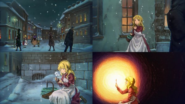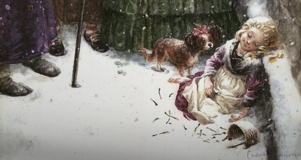Иллюстрация девочка со спичками к сказке является великолепным дополнением к этой известной и трогательной истории. На картине мы видим маленькую девочку, одетую в лохмотья, сидящую на холодном углу улицы и держащую в руке спички. Ее грустные глаза наполнены надеждой и мечтами о лучшей жизни, которую она пытается построить через свои фантазии. Освещение на иллюстрации придает ей атмосферность и подчеркивает ее беззащитное положение. Эта картина не только визуально привлекательна, но и передает глубокий смысл и эмоциональную силу самой сказки.