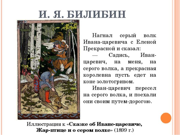 Иван Билибин - известный русский художник-иллюстратор, чьи работы стали настоящими шедеврами в мире искусства. Он создал множество прекрасных иллюстраций к различным сказкам и легендам, одной из которых является иллюстрация к сказке "Царевич и серый волк". В своих работах Билибин передал всю сказочность и фантастический мир этого произведения, затягивая зрителя в волшебное путешествие. Его тонкий почерк и великолепное использование цветов делают каждую иллюстрацию живой и неповторимой. Благодаря своему таланту и вдохновению, Иван Билибин создал настоящее произведение искусства, которое до сих пор восхищает и вдохновляет любителей сказочной эстетики.