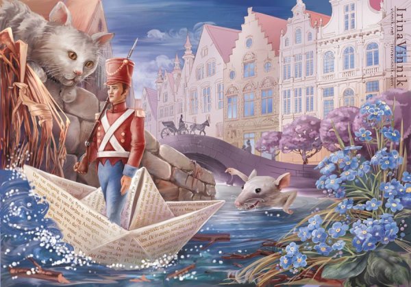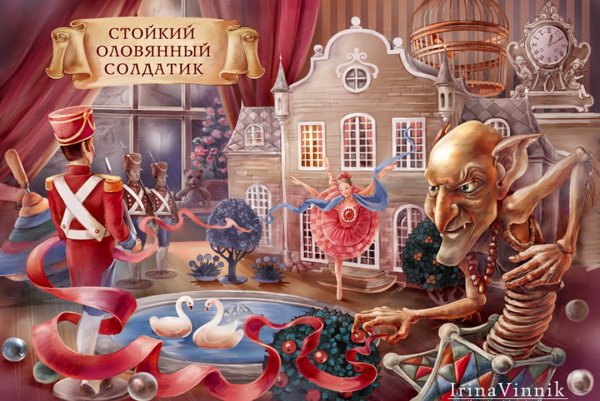 Эта замечательная иллюстрация воплощает сказочный мир оловянного солдатика. На ней изображен самый маленький и храбрый герой, который стоит на одной ноге, держась на своем маленьком ружье. Он готов сразиться со всеми опасностями, чтобы защитить свою возлюбленную прекрасную балерину. Фон иллюстрации создает атмосферу загадочности и приключений: лунный свет освещает побережье, где стоят корабли и величественные здания. Каждая деталь этой иллюстрации подчеркивает важность маленького солдатика и его веры в любовь. Это картина, которая заставляет нас поверить в силу духа и показывает, что даже самые маленькие герои способны совершить великие дела.