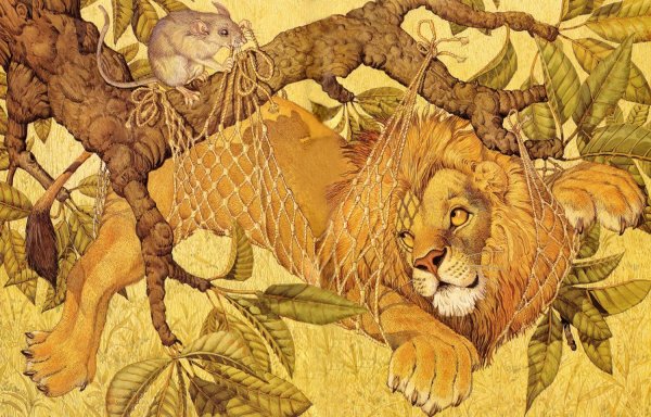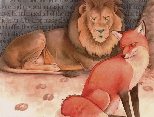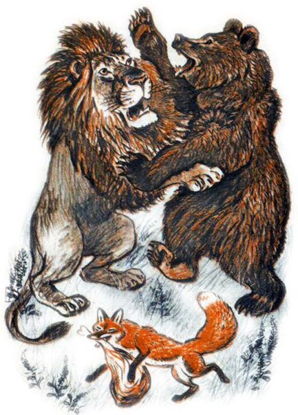 Иллюстрация к сказке "Лиса и лев" прекрасно передает атмосферу и сюжет этого увлекательного произведения. На рисунке мы видим лису и льва, главных героев истории, которые изображены в ярких и насыщенных цветах. Лиса, со своим хитрым выражением лица, пытается обмануть льва, а тот, мощный и величественный, смотрит на нее с недоверием. Вокруг них располагается живописный лес, со всеми его деталями - зелеными деревьями, цветущими цветами и игривыми бабочками. Иллюстрация приковывает внимание зрителя и заставляет задуматься о тонкой гран