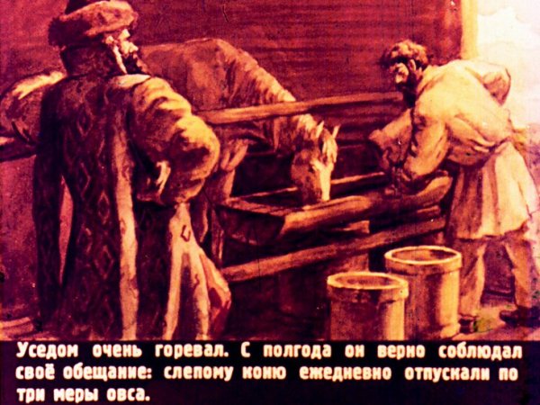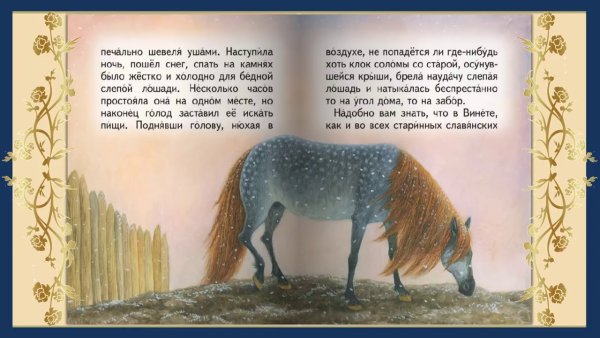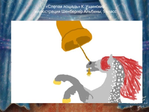 Иллюстрация к сказке "Слепая лошадь" поражает своей выразительностью и глубиной смысла. На рисунке изображена лошадь, неспособная видеть, но обладающая невероятной мудростью и интуицией. Ее тело пропитано элегантностью и грацией, а мягкие линии и плавные переходы оттенков создают ощущение летящего движения. Очаровательная лошадь приковывает взгляд своими большими слепыми глазами, которые, как будто, проникают в самое сердце зрителя. Данная иллюстрация символизирует великолепие духовного мира, способность проникать в глубину событий и видеть то, что скрыто от глаз обычных смертных.