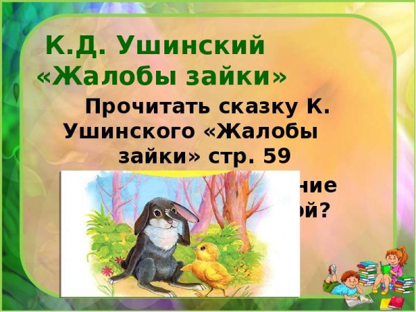 Иллюстрация к сказке "Жалобы Зайки" удивительно передает атмосферу и настроение этой замечательной истории. На рисунке мы видим милого зайку, который, сидя на зеленом лугу под ярким солнцем, выражает свои жалобы на то, что ему не дают покоя. Очаровательные детали и яркие цвета создают впечатление животного в гармонии со своим окружением. Иллюстрация приковывает внимание и вызывает чувство сочувствия к главному герою, в то же время раскрывая основную тему сказки о поиске счастья и понимании себя. Эта прекрасная работа художника станет отличным дополнением к любой изданию сказки "Жалобы Зайки".