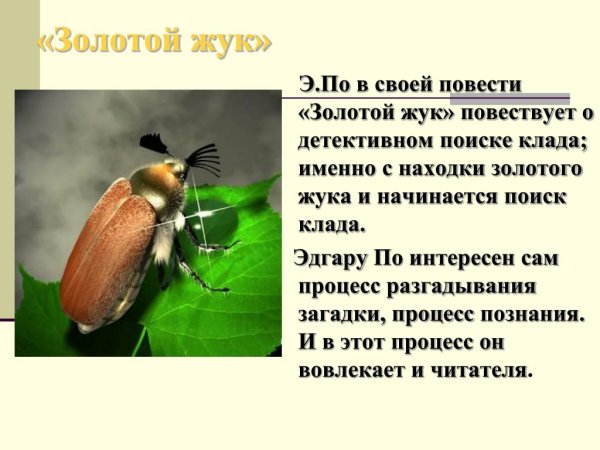 Золотой жук - это волшебный персонаж из сказки, который обладает удивительными способностями и прекрасной внешностью. Иллюстрация к этой сказке помогает нам визуализировать его образ, позволяет окунуться в волшебный мир и почувствовать всю его красоту и загадочность. Золотой цвет позволяет подчеркнуть его особенность, а детальная проработка каждого элемента добавляет жизни и реалистичности. Наблюдая за иллюстрацией золотого жука, мы можем представить себе, как он летит в небе, излучая свет и радость, или как он сидит на цветке, принимая его форму и таинственно смотря на нас. Эта иллюстрация приглашает нас в удивительный мир сказок, где все возможно, и где добро всегда побеждает зло.
