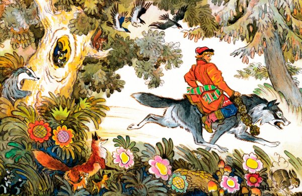 Иллюстрация к сказке "Иван Царевич и серый волк" является ярким и увлекательным воплощением этого популярного русского народного сюжета. На картине можно увидеть Ивана Царевича, храброго и отважного героя, стоящего рядом с могучим серым волком. Волк изображен с мощной фигурой, олицетворяющей его силу и смелость, а Иван Царевич - с мечом в руке, готовый противостоять опасности. Отличительная черта этой иллюстрации - ее яркие и насыщенные цвета, которые подчеркивают динамизм и напряженность событий сказочного сюжета. Благодаря такой замечательной иллюстрации, читатели смогут лучше представить себе главных героев и пережить вместе с ними приключения волшебного мира русских народных сказок.