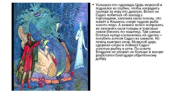 Иллюстрации к сказке "Садко и морской царь" воссоздают удивительный и загадочный мир подводного царства. Они позволяют читателям окунуться в захватывающее приключение главного героя, Садко, который отправляется в путешествие по морским глубинам. Иллюстраторы смогли передать волшебство и таинственность этого сказочного мира, создавая яркие и насыщенные изображения подводных ландшафтов, коралловых рифов и необычных морских обитателей. Каждая иллюстрация оживляет события сказки, погружая читателя в ее атмосферу и помогая визуализировать повествование. Благодаря детально проработанным иллюстрациям, каждая страница становится настоящим произведением искусства, раскрывая перед нами мир волшебства и фантазии. Будь то встреча Садко с морским царем или его плавание по глубинам моря, эти иллюстрации превращают сказку в незабываемый визуальный опыт и делают чтение еще более увлекательным и захватывающим.