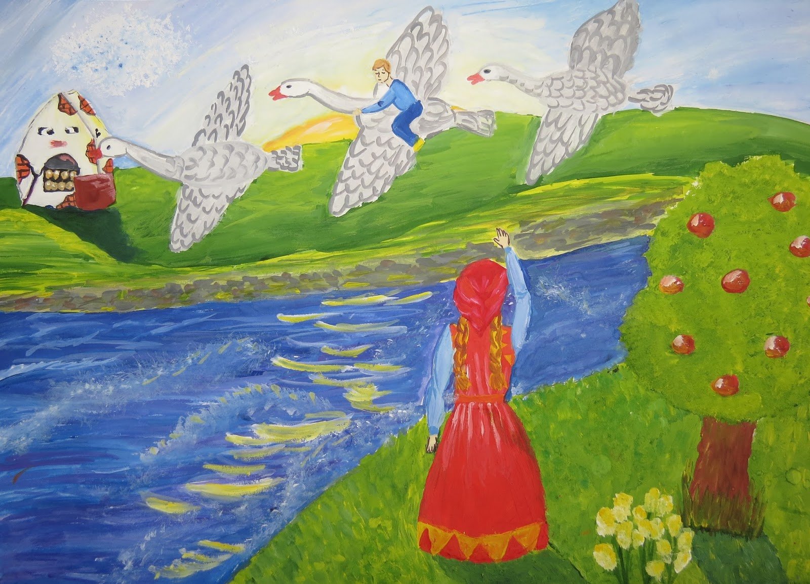 Иллюстрации к сказке "Гуси-лебеди" великолепно передают мир и волшебство этой детской истории. Рисунки, выполненные детьми, придают особую неповторимость и оригинальность каждому образу и сцене. В каждом изображении можно увидеть яркие цвета, детали, которые помогают визуализировать события и персонажей сказки. Они позволяют детям легко воссоздать сказочный мир и полностью погрузиться в его атмосферу. Эти иллюстрации подарят малышам не только радость от чтения сказки, но и возможность развивать свою творческую фантазию и воображение.