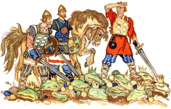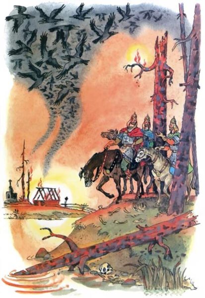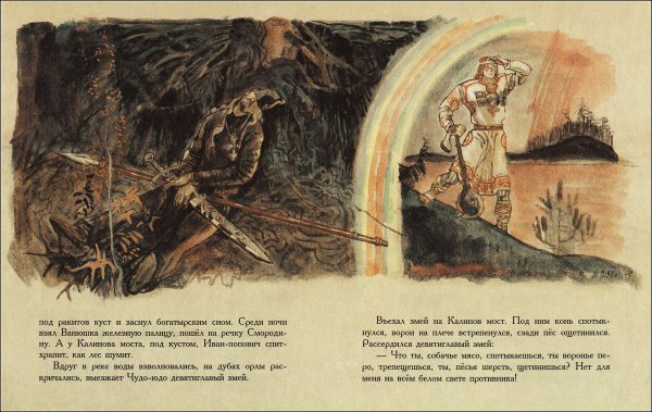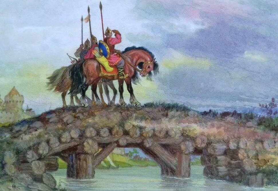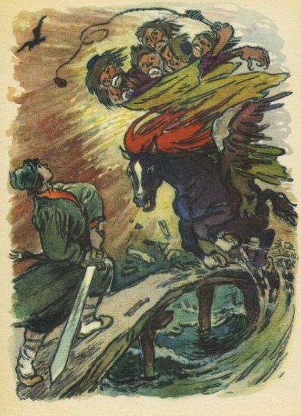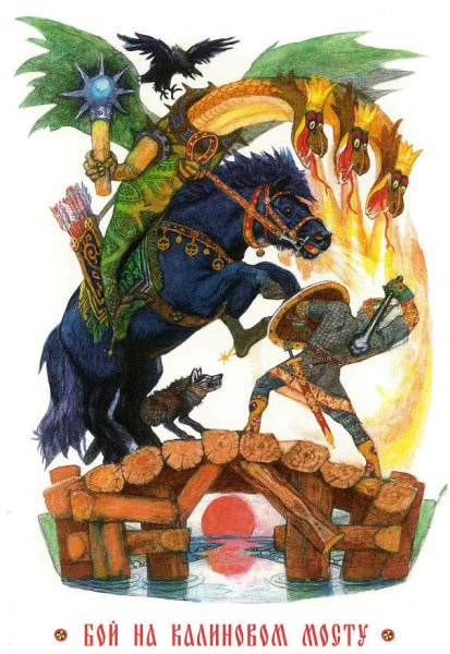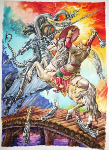 Иллюстрация к сказке "Бой на Калиновом мосту" - это яркое и загадочное изображение, которое передает атмосферу магии и приключений. На рисунке можно увидеть сам мост, который сияет яркими калиновыми цветами, окруженными густым лесом. Вокруг моста развернулся бой героев: добрых воинов, прекрасных принцесс и злобных ведьм. Изображение полно экспрессии и деталей, позволяющих зрителю погрузиться в мир происходящего. Оно наводит на мысли о силе дружбы, любви и победе добра над злом. Иллюстрация к сказке "Бой на Калиновом мосту" станет прекрасным украшением любого детского книжного издания или постера для тех, кто верит в сказку и приключения.