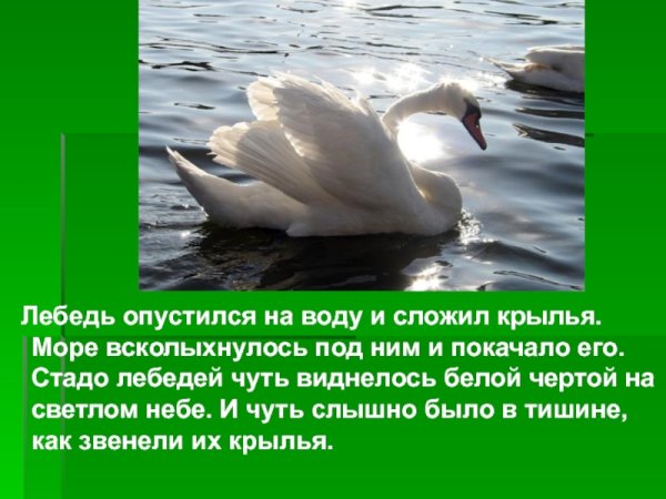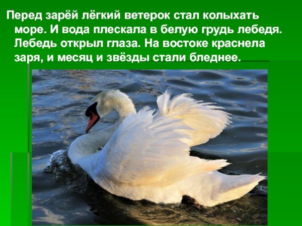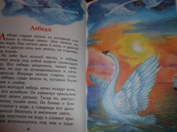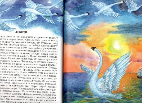 Иллюстрация к сказке "Лебеди" Льва Николаевича Толстого воссоздает замечательный мир этой прекрасной и глубокой истории. Авторское изображение лебедей, которые становятся символом чистоты и благородства, передает нежность и элегантность этих прекрасных птиц. Иллюстрация сопровождает сюжет сказки, рассказывающий о добрых поступках и верности, о том, как настоящая любовь может преодолеть любые преграды. Красочные цвета и умело переданная атмосфера позволяют читателю полностью погрузиться в волшебный мир сказки и ощутить ее глубокий смысл. Иллюстрация к сказке "Лебеди" Льва Николаевича Толстого является великолепным дополнением к этому произведению и помогает лучше понять его главное послание.