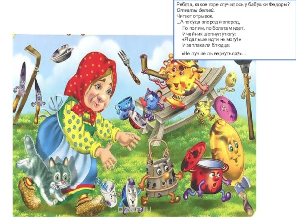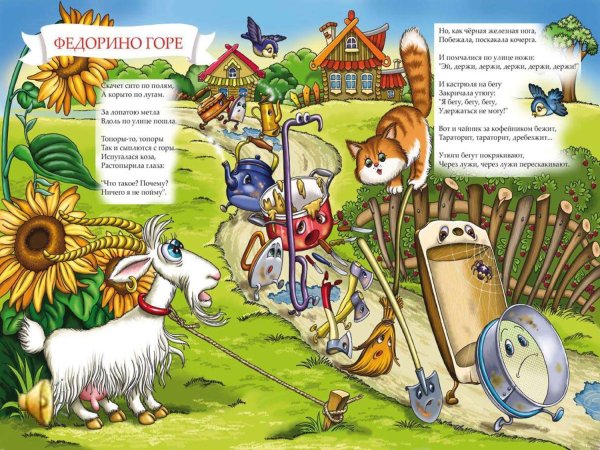 Иллюстрации к сказке "Федорино горе" Чуковского - это яркие и увлекательные изображения, которые помогают визуализировать события и персонажей этой знаменитой детской истории. Каждая иллюстрация передает настроение произведения и позволяет маленьким читателям еще глубже погрузиться в мир приключений Федорика, теремка со скрипкой и лисы-неудачницы. От ярких цветов до детальной проработки деталей, иллюстрации к "Федориному горю" создают атмосферу игры, волшебства и веселья, оживляя сказочную реальность и расширяя воображение читателей разного возраста. Благодаря этим великолепным иллюстрациям, сказка становится еще более пленительной и запоминающейся для всех маленьких и больших любителей литературы.