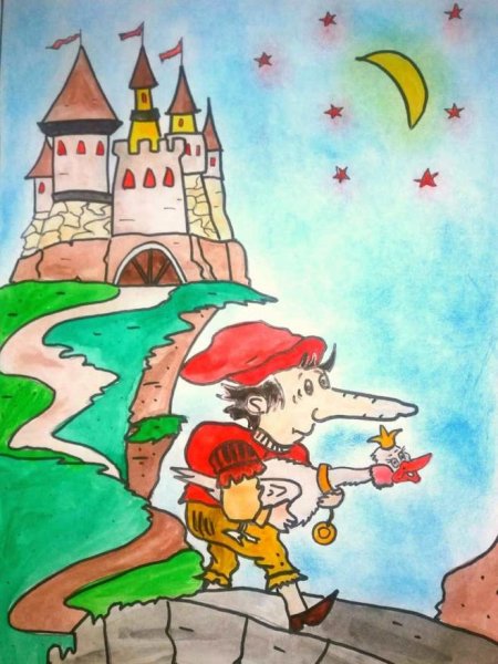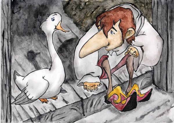 Иллюстрация к сказке "Карлик Нос" создана с использованием карандаша, который придает ей особую живость и выразительность. На рисунке изображен главный герой сказки - карлик с необычным носом. Карандаш позволяет передать каждую малейшую деталь его внешности, отчетливо показывая выразительность его глаз, форму носа и выражение лица. Используя мастерство сказочного художника, иллюстрация воссоздает атмосферу и чувства, которые описаны в истории, погружая зрителя в волшебный мир карликов и фантастических приключений. Эта яркая и привлекательная иллюстрация станет неотъемлемой частью сказочной книги, увлекая маленьких читателей и помогая им представить удивительный мир "Карлика Носа".