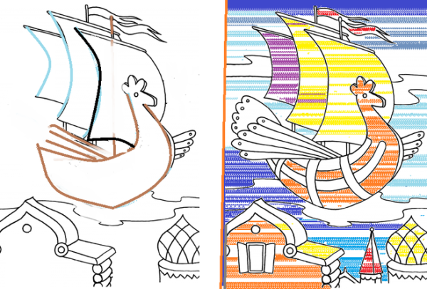 Эта удивительная иллюстрация, выполненная искусным художником карандашом, погружает нас в мир сказки о летучем корабле. Каждая деталь этого произведения искусства захватывает воображение и рассказывает свою уникальную историю. На картине мы видим вознесшийся в небо корабль, обрамленный густыми тучами. Силуэты его парусов изящно вырисовываются на фоне закатного неба, которое окрашено в яркие оттенки оранжевого и фиолетового. Летучий корабль словно парит в воздухе, создавая ощущение легкости и свободы. Видимые детали - птицы, крылатые кони и другие фантастические существа - придают этой иллюстрации особую магию и загадочность. В целом, она переносит нас в потрясающий мир приключений и фантазии, где все возможно. Эта иллюстрация является не только отличным произведением искусства, но и прекрасным воплощением самой сказки о летучем корабле, позволяя нам забыть о реальности и окунуться в увлекательное путешествие.