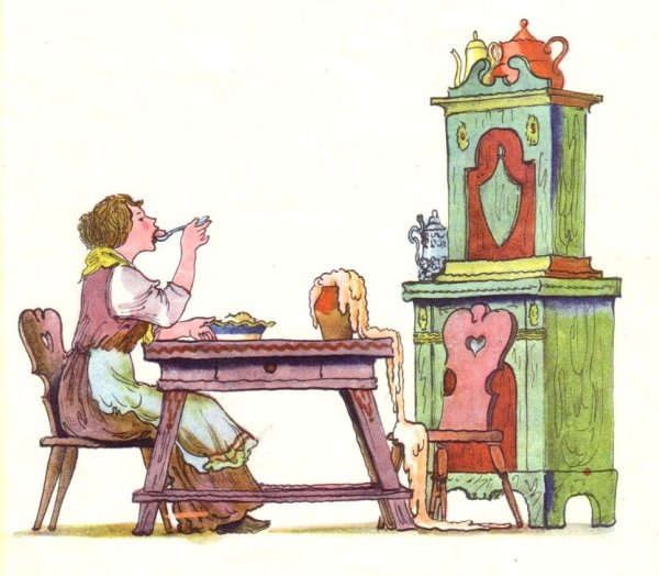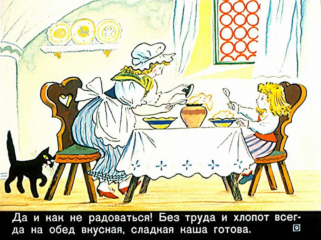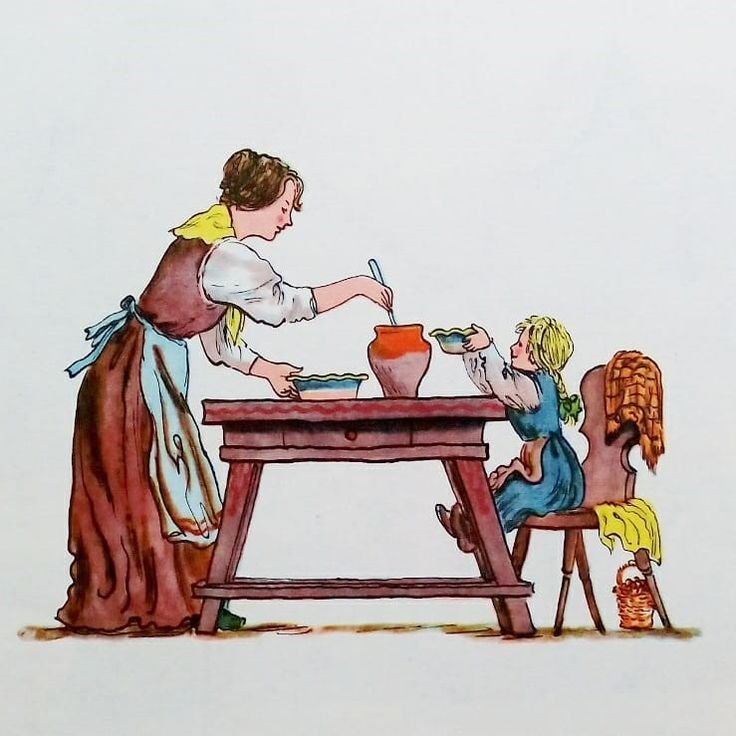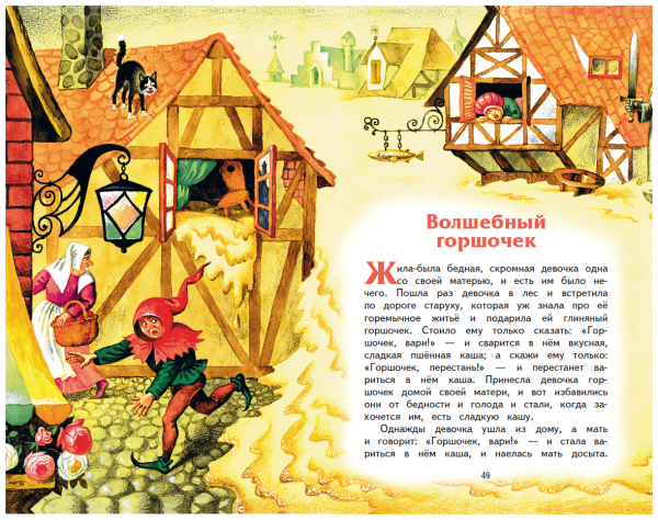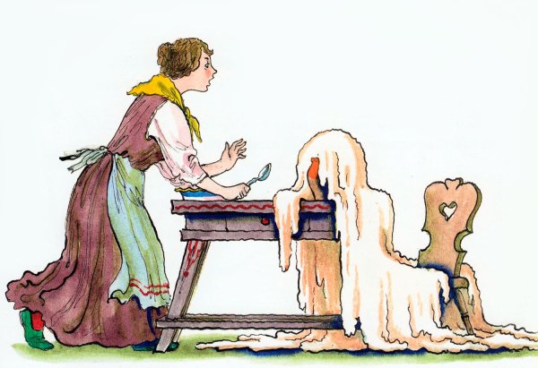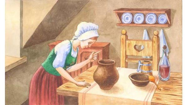 Волшебный горшочек - это удивительная история, о которой рассказывают братья Гримм. В центре сюжета находится маленький горшочек, который обладает невероятной силой: он может приготовить любую пищу, даже самую простую, в изобилии. Эта иллюстрация передаёт атмосферу волшебства и загадочности, которая окружает этот предмет. Можно увидеть горшочек, расположенный на старинном столе, с его золотистыми узорами и блестящими звездами. Вокруг него кружатся различные фрукты, овощи и другие продукты, символизируя бесконечное богатство, которое может создать этот горшочек. Иллюстрация воплощает сказочную атмосферу и заставляет зрителя поверить в существование магии и чудес. Она приглашает каждого окунуться в мир фантазий и позволяет почувствовать радость и удовлетворение от исполнения желаний.