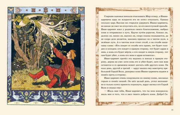 Иллюстрации к русской народной сказке "Жар-птица" - это великолепное произведение искусства, которое художественно передает эпическую атмосферу и магию этого известного сказочного произведения. Они оживляют героев и события сказки, позволяя нам окунуться в удивительный мир Русского фольклора. Изображения жар-птицы, Ивана-царевича, Кощея Бессмертного и других персонажей захватывают внимание своей яркостью и детализацией. Такие иллюстрации не только придают особый шарм книге или альбому, но и помогают читателям визуализировать события и переживания героев. Это настоящее воплощение магии русских народных сказок и величия искусства.
