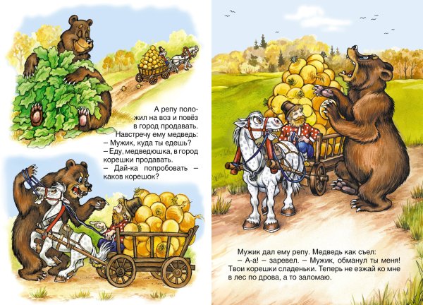 Сказка "Мужик и медведь" — это захватывающий рассказ о необычной дружбе между простым мужиком и добрым медведем. Волшебные иллюстрации, которые сопровождают эту историю, позволяют читателю окунуться в мир сказочных приключений и пережить все эмоции героев. Они передают теплоту и искренность отношений между главными героями, а также создают уютную атмосферу сказочного леса. Каждая иллюстрация яркая и неповторимая, словно оживший кадр из самого настоящего мультфильма. Благодаря этим великолепным иллюстрациям, сказка "Мужик и медведь" становится еще более привлекательной для детей и взрослых, позволяя полностью погрузиться в увлекательный мир фантазии и волшебства.