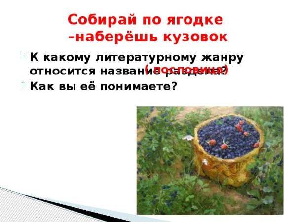 Увлекательная и захватывающая сказка под названием "Собирай по ягодке наберешь кузовок" ожидает тебя в этой книге. Она наполнена яркими иллюстрациями, которые позволят визуализировать каждую сцену и пережить все эмоции героев. Узнай, как маленький герой отправляется в увлекательное приключение, чтобы найти специальную ягодку, которая может исполнить любое желание. С помощью этих прекрасных иллюстраций вы сможете лучше понять и воссоздать всю атмосферу и магию этой неповторимой сказки. Не упускай возможность погрузиться в волшебный мир и насладиться прекрасными иллюстрациями этой книги.