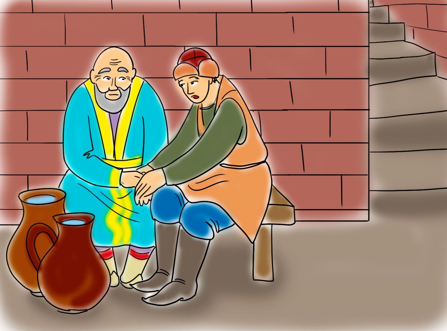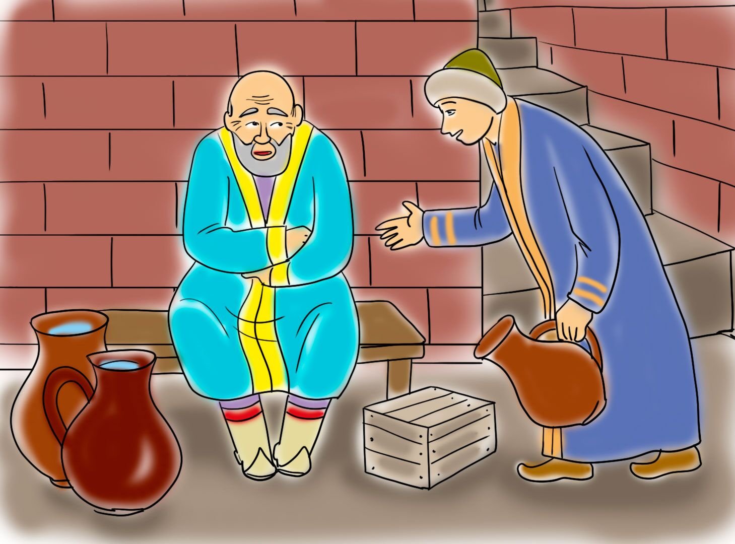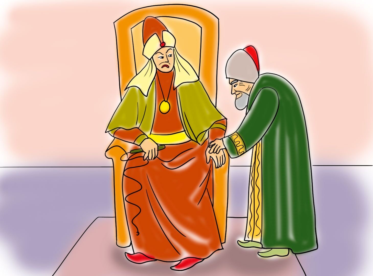 Иллюстрация к сказке "Мудрый старик и глупый царь" является ярким воплощением главных героев и ключевых моментов этого увлекательного произведения. На картине изображен мудрый старик, обладающий мудростью и жизненным опытом, который стоит перед глупым царем, олицетворяющим безрассудство и неразумные решения. Взгляды и выражение лиц персонажей позволяют нам сразу понять разницу в их характерах и подчеркивают главную идею сказки — что мудрость и здравый смысл всегда превосходят безрассудные поступки. Иллюстрация приносит дополнительное визуальное восприятие сказки и помогает нам лучше понять ее глубинный смысл.