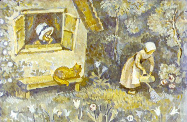 Иллюстрация к сказке "Бабушка Метелица" - волшебная работа искусства, которая запечатлевает яркий и удивительный мир этой знаменитой русской сказки. На ней изображена старушка Метелица, облаченная в длинное белое платье, с волшебной палочкой в руке и сияющими глазами. Вокруг нее танцуют снежинки и перья, создавая атмосферу волшебства и загадки. Пейзаж также является важной частью иллюстрации: сказочные елки, покрытые снегом, и мягкий свет луны создают чувство волшебства и загадочности. Иллюстрация к сказке "Бабушка Метелица" приносит радость и восхищение своими яркими цветами, прекрасной детализацией и магической атмосферой, оживляя любимую историю в воображении читателей.
