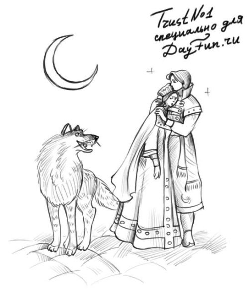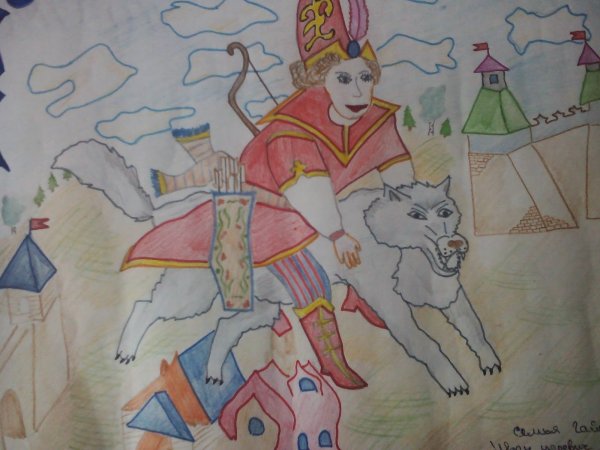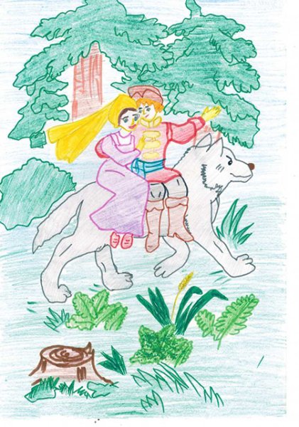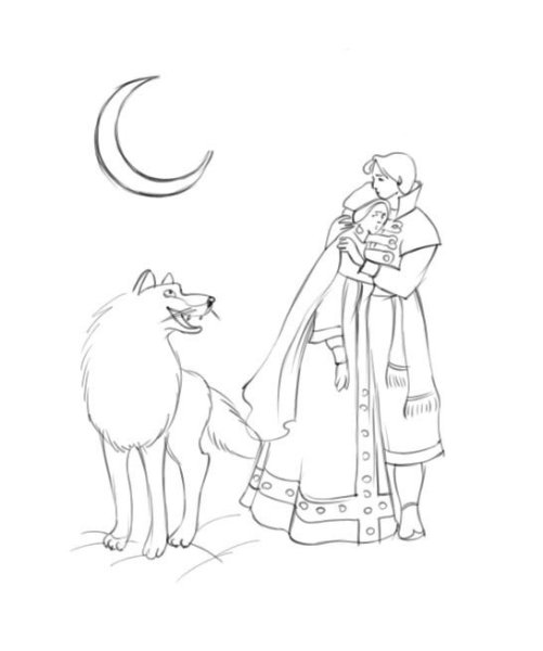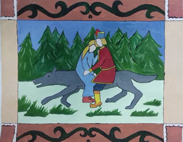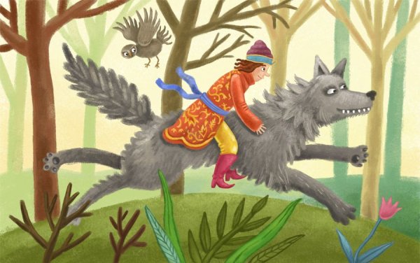 Иллюстрация к сказке "Иван Царевич и Серый Волк" представляет собой яркий и увлекательный образ, который помогает визуализировать сюжет и эмоции главных героев. На картине можно увидеть Ивана Царевича, молодого и отважного принца, в его традиционном наряде, окруженного зелеными полями и цветущими деревьями. Рядом с ним изображен Серый Волк, странный и загадочный персонаж, с внушительными размерами и пронзительным взглядом. Их встреча, запечатленная в этой иллюстрации, символизирует столкновение добра и зла, силы и хитрости, что способствует развитию сюжетной линии сказки. Нежные и четкие линии рисунка, яркие и насыщенные цвета придают иллюстрации живость и динамичность, заставляя зрителя вовлечься в сказочный мир и следить за приключениями Ивана Царевича и Серого Волка.