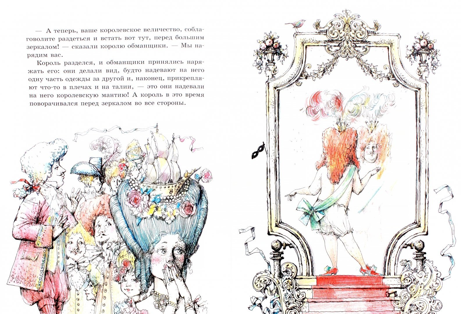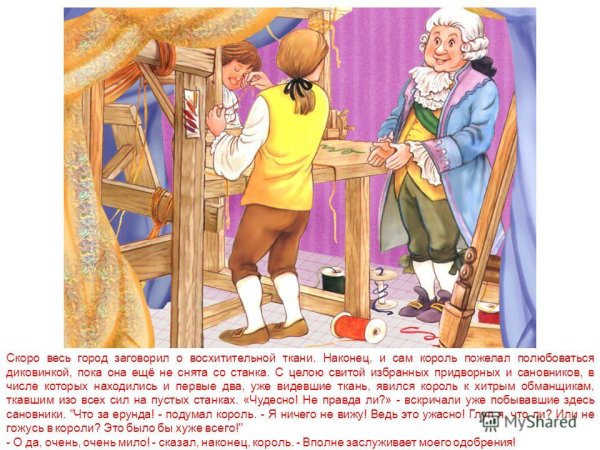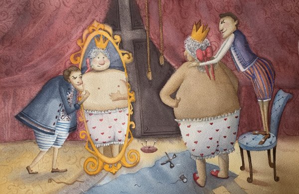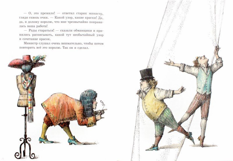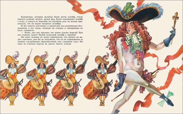Новое платье короля - это удивительное и впечатляющее произведение искусства. Каждая деталь этого платья была продумана до мельчайших подробностей, чтобы создать неповторимый образ для короля. Яркие цвета и сложные узоры делают это платье неотразимым и притягательным. Оно словно оживает на страницах сказки, приобретая особую магию и чарующий вид. Платье короля становится символом его величия и власти, а также выражением его уникального стиля и вкуса. Оно точно заслуживает внимания и восхищения всех, кто заглядывает в мир этой фантастической иллюстрации.