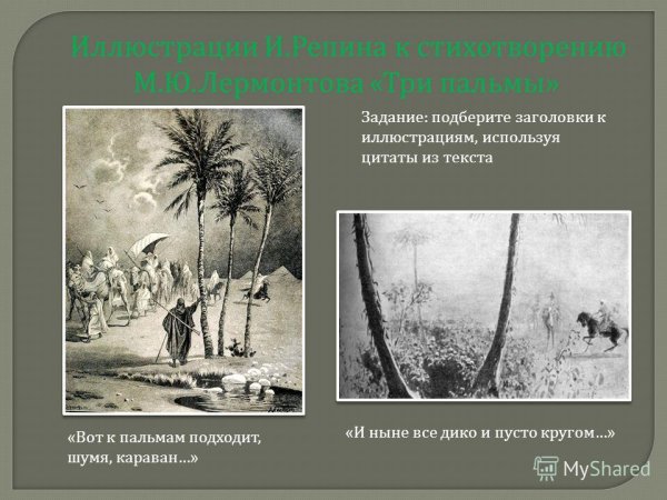 Иллюстрация к стихотворению "Три пальмы" – это визуальное творение, которое олицетворяет глубину и символику данного произведения. Картина передает образ трех пальм – сильных, изящных и неустанно колышущихся под воздействием ветра. Их контуры ярко выражены, цвета насыщены и сочетаются между собой. В этом произведении искусства можно увидеть гармоничное соединение природы, ее бесконечной энергии и человеческого восприятия. Она приносит чувство покоя и свободы, а также символизирует прочность и устойчивость в любых жизненных ситуациях. Эта иллюстрация станет прекрасным дополнением к стихотворению "Три пальмы", расширяющим его смысловую глубину и помогающим в полной мере погрузиться в мир поэзии.
