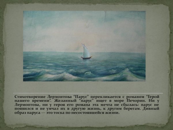 Иллюстрация к знаменитому стихотворению "Парус" Михаила Лермонтова - это визуальное воплощение мощной поэтической метафоры, которая олицетворяет жизненный путь человека. Через изображение паруса, надутого ветром и плавно скользящего по поверхности воды, передается граничная состояние между свободой и подчинением судьбе. Отличительные черты этой иллюстрации - эстетическая привлекательность, динамика и глубокий символизм, который позволяет зрителю увидеть не только красоту природы, но и отражение душевных состояний и переживаний. Иллюстрация к "Парусу" Лермонтова - это прекрасная возможность насладиться искусством и литературой одновременно, раскрыть глубину поэтического текста через визуальное изображение.