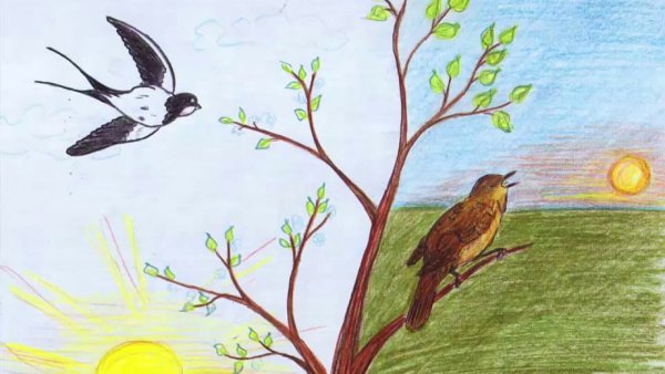 Иллюстрация к стихотворению "Дети и птичка" является визуальным отражением магического мира детства и гармонии с природой. На этой картине можно увидеть игривых детей, окруженных зелеными полями и цветущими деревьями, в то время как небольшая птичка летит вокруг них. Иллюстрация передает ощущение радости и нежности, а также символизирует свободу и непосредственное общение с живым миром. Она привлекает внимание и позволяет погрузиться в фантазийный мир детства, где все возможно и где дети могут наслаждаться простыми радостями жизни.