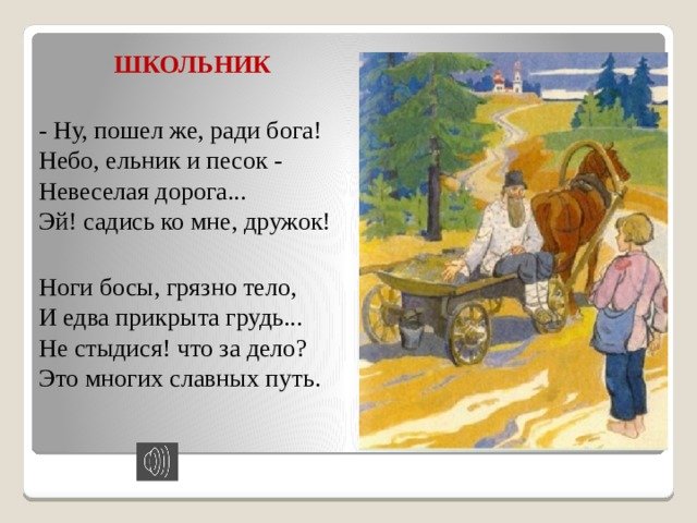 Иллюстрация к стихотворению "Школьник" Некрасова – это визуальное изображение, которое помогает дополнить и раскрыть смыслы и эмоции, заложенные в тексте этого произведения. Она позволяет нам взглянуть на реалии школьной жизни человека, который старается преодолевать трудности и препятствия на своем образовательном пути. Иллюстрация может передавать состояние усталости и отчаяния, которые испытывает герой, а также его стремление к знаниям и светлому будущему. Визуальный образ наряду с поэтическим текстом создает цельное произведение и погружает зрителя-читателя в мир школьника, его мысли и чувства.