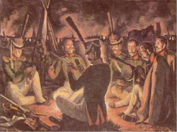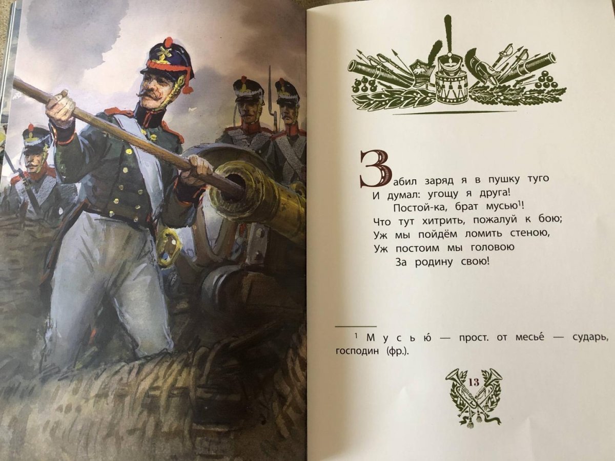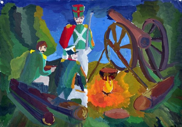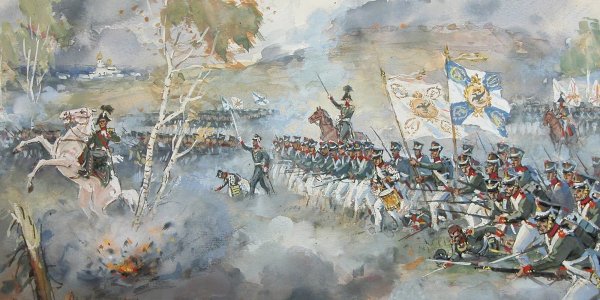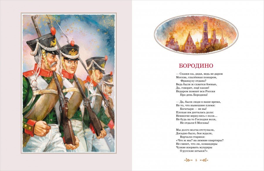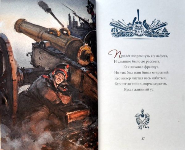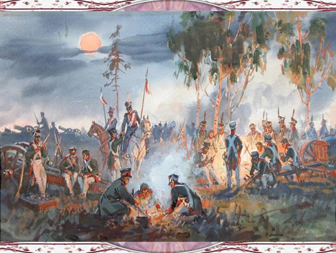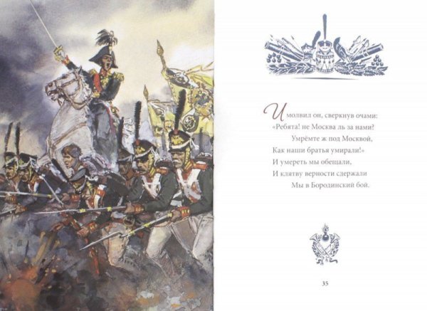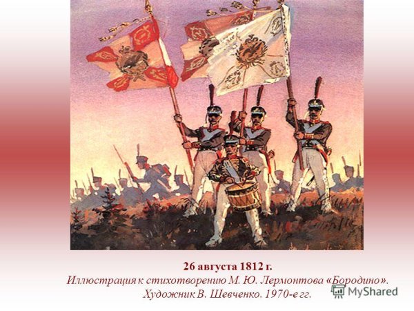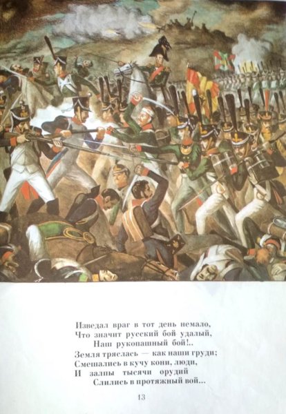 Иллюстрация к стихотворению Лермонтова "Бородино" представляет собой визуальное изображение эпической сцены битвы, описанной поэтом. На иллюстрации можно увидеть героических солдат, сражающихся на поле боя, мощные кони, вздымающиеся облака пыли и заполняющий их гул сражения. Картина передает не только величие и масштаб событий, но и эмоциональную напряженность и трагичность момента. Иллюстратор использовал яркие цвета, чтобы подчеркнуть драматизм событий, и точные детали, чтобы передать атмосферу битвы. Эта иллюстрация помогает зрителю лучше понять и визуализировать происходящее в стихотворении и пережить его эмоциональные оттенки.