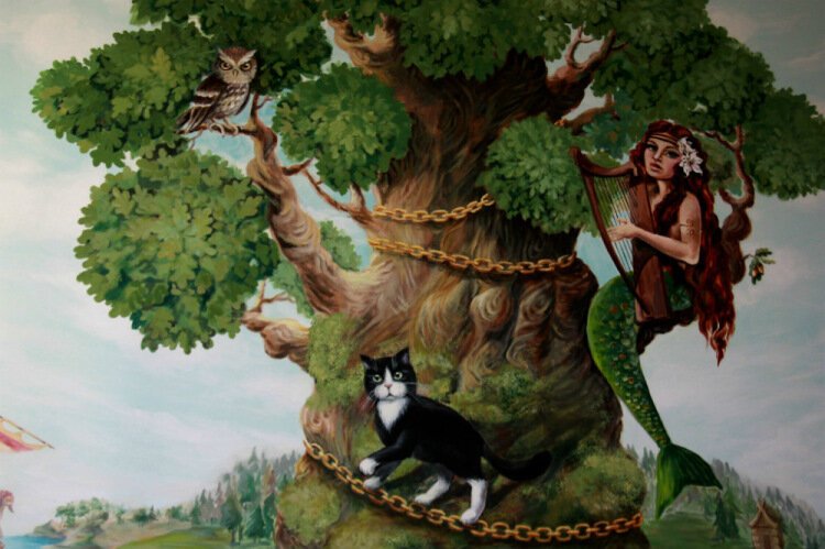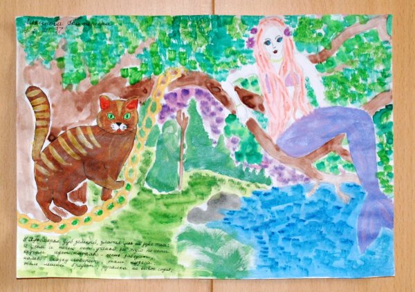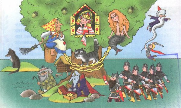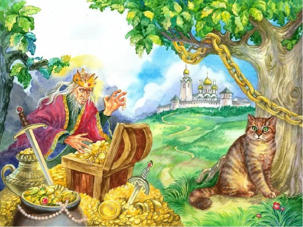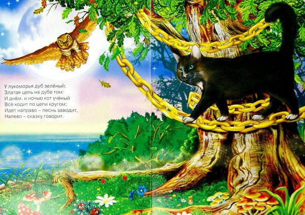 Зеленый дуб у лукоморья - это впечатляющая иллюстрация, которая привносит в произведение особую атмосферу и загадочность. Величественное дерево с зелеными листьями выглядит мощным и старым, словно хранит в себе тайны и секреты древних времен. Его крона создает тень и создает ощущение уединения и защиты, что подчеркивает таинственность этого магического места. Зеленый дуб является неотъемлемой частью уникального ландшафта у лукоморья, добавляя еще больше волшебства и загадочности к этому знаменитому произведению.