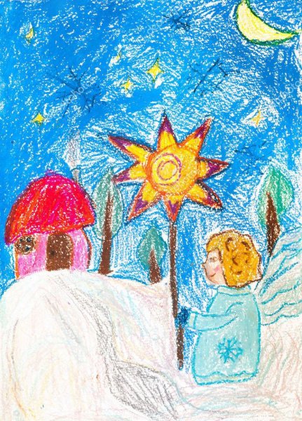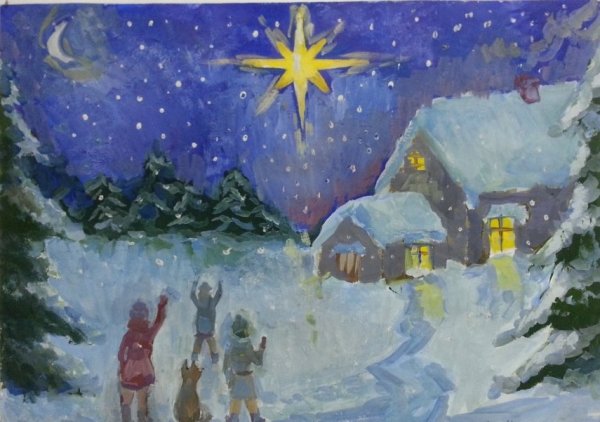 Иллюстрация к стихотворению "Рождественская звезда" воссоздает атмосферу праздника и символизирует дух рождественского времени. Эта яркая, мерцающая звезда на ночном небе наполняет сердце радостью и надеждой. Она не только указывает путь к рождению Иисуса Христа, но и символизирует свет и мир, который приносит с собой Рождество. Изображение звезды создает ощущение таинственности и волшебства, перенося нас в мир чудес, где исполняются самые заветные желания. Каждая деталь этой иллюстрации пронизана нежностью и сказочностью, отражая главное послание Рождества - любовь и вера. Иллюстрация "Рождественская звезда" станет прекрасным дополнением к стихотворению, вводящим читателя в волшебный мир праздника и наполняющим его душу радостью и великим значением этого особенного времени.