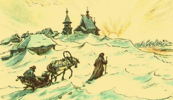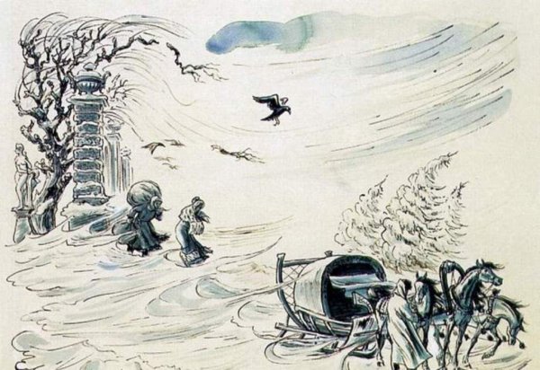 Иллюстрация к произведению "Метель" - это воплощение атмосферы бушующей стихии и сильнейших природных сил. На картине можно увидеть мощный снежный вихрь, который окутывает все вокруг своими замысловатыми спиральными линиями. Белый снег падает с неба, создавая эффект непроглядной пелены и усложняя видимость. Пейзаж полностью погружен в полутьму, только разрозненные огоньки отражаются на снежной поверхности, словно представляя тусклые огни в глубине холодной ночи. Весь образ наполнен динамикой и энергией, что передаёт читателю или зрителю силу природы и её необузданность. Иллюстрация к произведению "Метель" является прекрасным визуальным сопровождением текста, которое подчеркивает его сюжетную линию и сильное воздействие природы на главных героев.