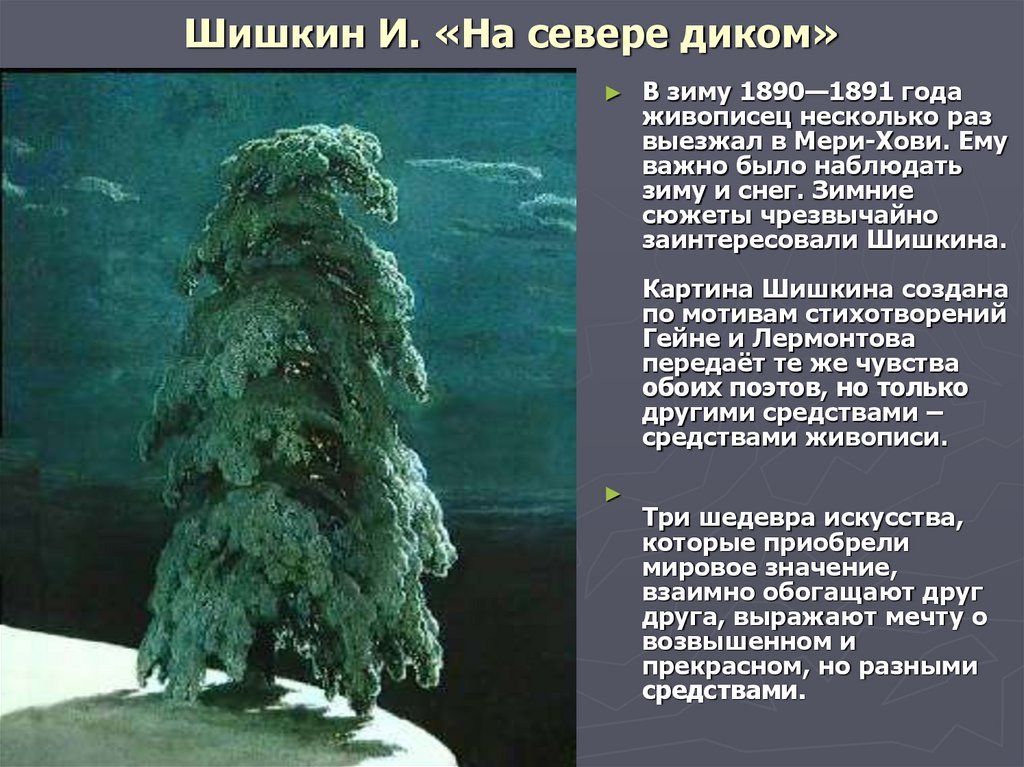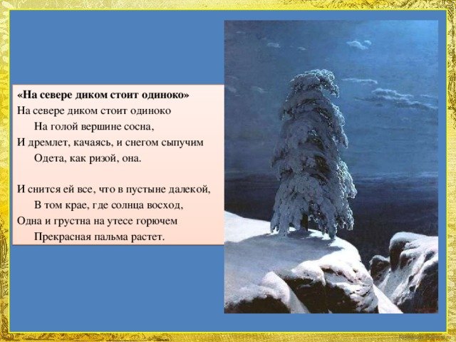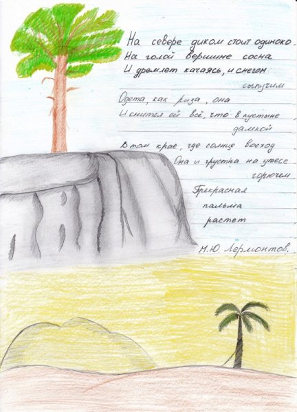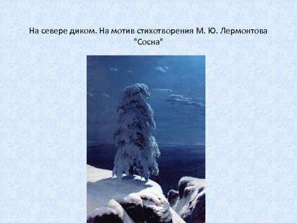 Прекрасная иллюстрация к знаменитому стихотворению Михаила Лермонтова "На севере диком" привлекает внимание своей загадочной и одинокой атмосферой. Величественные северные пейзажи, покрытые туманом и снегом, оживают на страницах этого произведения благодаря ярким краскам и мастерскому исполнению художника. Изображение одинокой фигуры, стоящей посреди бескрайних просторов, вызывает чувство тайны и умиротворения, отражая основную идею стихотворения о непостижимой красоте природы и ее воздействии на человека. Иллюстрация не только визуально привлекательна, но и передает глубокий эмоциональный смысл произведения, делая его еще более притягательным для любителей литературы и изобразительного искусства.
