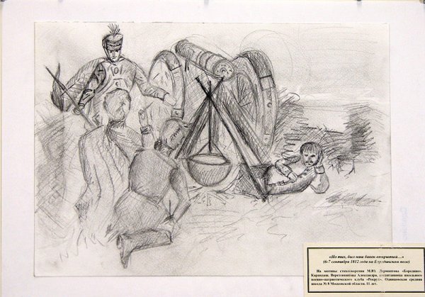 Иллюстрация к стихотворению "Бородино" выполнена мастером карандашной графики. В ней передана эпическая атмосфера знаменитой битвы, произошедшей во время Отечественной войны 1812 года. Каждая деталь изображения тщательно проработана, точность и реалистичность переводят нас в то время и позволяют ощутить все ее масштабы. Рельефные черты лиц солдат, напряженные позы, дым от выстрелов, шум и суета поля боя - все это создает впечатление живого повествования о трагических событиях. Иллюстрация карандашом олицетворяет важность и значимость этого исторического сражения, что делает ее незаменимой частью визуального восприятия стихотворения "Бородино".