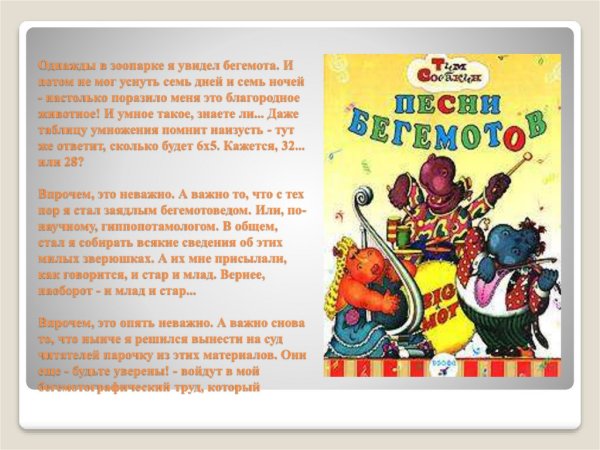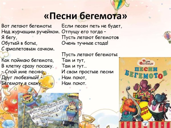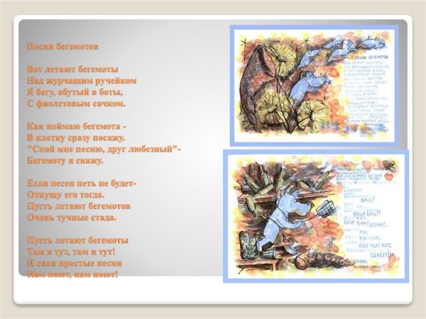 Иллюстрация к стихотворению песни бегемотов – это визуальное изображение, которое передает всю красоту и магию этой замечательной песни. Она позволяет увидеть слияние ритма, слов и образов, создавая гармоничное и привлекательное сочетание цветов и форм. Иллюстрация передает эмоции и настроение песни, подчеркивая ее основные темы и идеи. Благодаря необычным композициям и деталям, она приглашает зрителя окунуться в мир бегемотов и погрузиться в их увлекательное приключение. Каждый элемент иллюстрации имеет свою значимость и передает особую атмосферу песни, делая ее неповторимой и запоминающейся. Такая иллюстрация является отличным способом визуализировать слова и мелодию песни, позволяя каждому зрителю воспринять ее по-своему и создать свою собственную историю внутри этого произведения искусства.