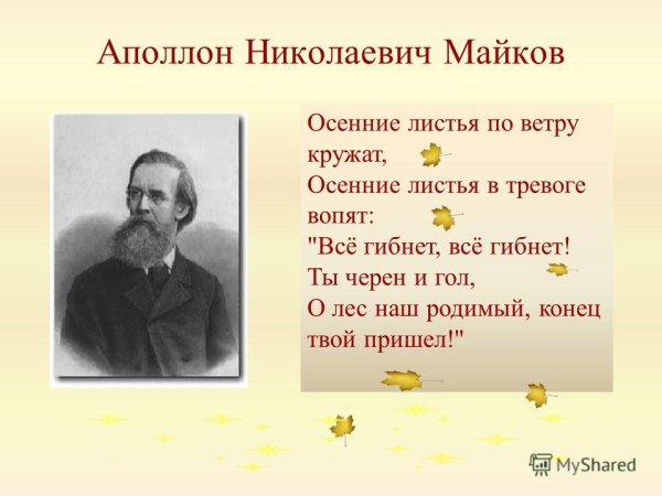 Иллюстрация к стихотворению Майкова "Осень" - это великолепное произведение искусства, которое передает всю красоту и многогранность этого времени года. На картине можно увидеть яркие осенние краски, оттенки золотого, оранжевого и красного, которые наполняют пейзаж теплотой и умиротворением. Ветви деревьев, согнутые под весом пышных листвы, создают своеобразный рисунок на небе, а листопад, словно танец, запечатленный на полотне, придает иллюстрации особое очарование. Под фоном умиротворенного осеннего заката, изображенного на картине, необыкновенная атмосфера гармонии и прекрасных эмоций передается зрителю. Эта иллюстрация точно передает все тонкости и чудеса осеннего времени года, заставляя нас задуматься о его уникальности и преображающей силе.