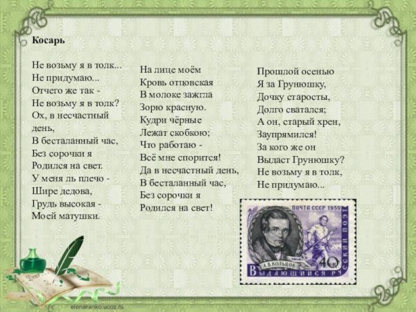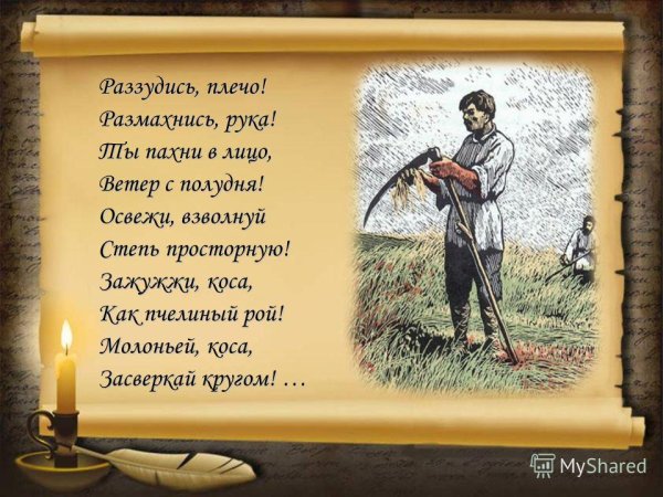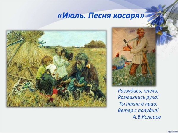 Иллюстрация к стихотворению "Косарь" Александра Кольцова - это визуальное творение, которое придаёт особую эмоциональную глубину и гармонию к тексту произведения. Эта иллюстрация отражает мир косаря, его труд и усталость, но в то же время передаёт красоту и живость летнего пейзажа. Она может быть выполнена в различных стилях и техниках, будь то живопись, графика или фотография, чтобы словно оживить стихи и перенести читателя в мир косаря, его работу и настроение. Используя яркие цвета, мастерство композиции и детализацию, иллюстратор создаёт образы, которые помогают читателю глубже вникнуть в суть стихотворения и усилить его воздействие на эмоции и воображение. Иллюстрация к стихотворению "Косарь" Александра Кольцова является неотъемлемой частью произведения, которая делает его более полным и запоминающимся.