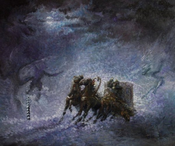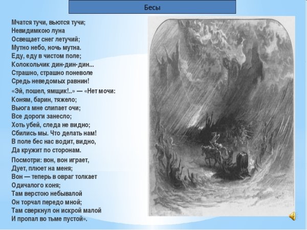 Иллюстрация к стихотворению "Бесы" Александра Пушкина воплощает в себе мрачную и загадочную атмосферу этого произведения. Она передает эмоциональное напряжение и неуловимость духовного мира бесов, которые олицетворяют силы зла и порока. Визуально это может быть изображение темной ночной лесной глуши, где скрытые фигуры бесов проникают в мир людей, или сцена хаотического обряда, где бесы разгуливают по пустынным полям. Иллюстрация должна вызывать тревогу и ощущение чего-то необъяснимого, словно зритель сам становится свидетелем происходящего и втягивается в коварные игры этих загадочных существ.
