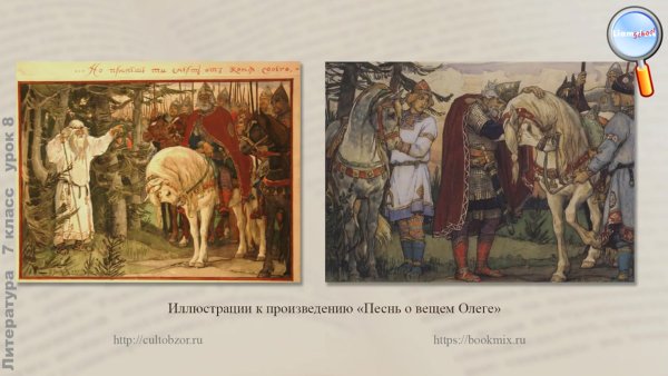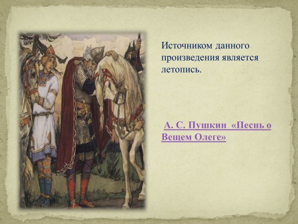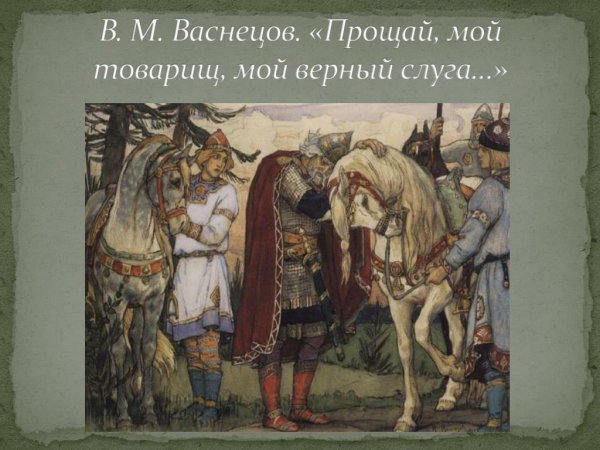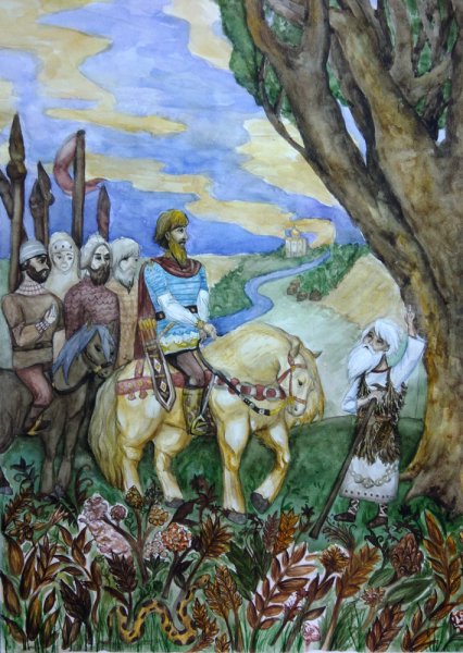 Иллюстрация к произведению "Песнь о вещем Олеге" является визуальным отражением этого знаменитого эпического поэтического произведения. Она передает глубокий смысл и эмоциональную напряженность, которые присутствуют в этой истории о славном воине Олеге. Иллюстрация может представлять собой мощное изображение битвы, на котором Олег возвышается над своими врагами, показывая его храбрость и решительность. Также она может отразить холодную и жестокую природу северных земель, где разворачиваются события произведения. Используя яркие цвета и детали, иллюстрация помогает воссоздать атмосферу древней Руси и захватывает воображение читателей, погружая их в мир старинных легенд и подвигов великих героев.