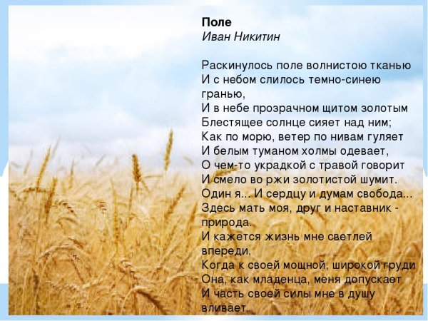 Иллюстрация к стихотворению "Не шуми ты, рожь" - это визуальное отражение поэтической атмосферы и настроения произведения. Рожь, символизирующая урожай и жизненную силу, изображена на картине во всей своей красе: золотистые колосья колышутся на ветру, создавая пленительный звуковой фон. Фон может быть выполнен в теплых, осенних тонах, чтобы передать особую атмосферу загадочности и спокойствия, присущую этому стихотворению. Важно подчеркнуть гармонию и мир, которые присутствуют в тексте, и передать их через изображение. Иллюстрация должна быть эмоциональной и вызывающей интерес у зрителя, помогая ему интуитивно погрузиться в мир стихотворения и ощутить его в полной мере.