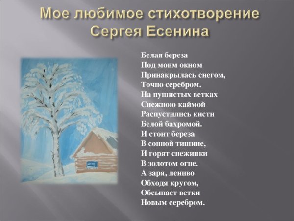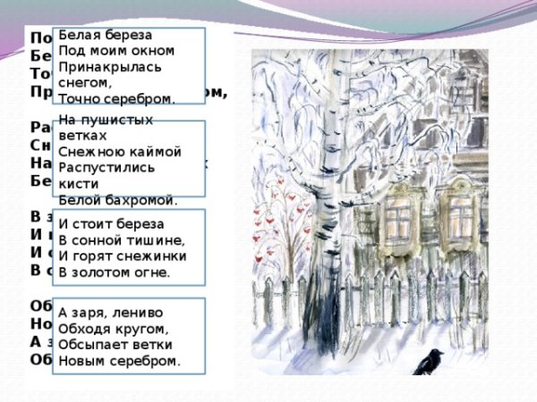 Белая береза - символ красоты и нежности природы, а также вдохновения для многих поэтов. Иллюстрация к стихотворению Есенина "Белая береза" позволяет увидеть эту красоту и перенестись в мир поэзии. Нежные веточки и светлая листва березы прекрасно передают ее изящество и легкость. Они создают атмосферу сказочности и романтики, которую так ярко описывает поэт. Иллюстрация подчеркивает тематику стихотворения и позволяет читателю еще глубже войти в мир слов и образов.