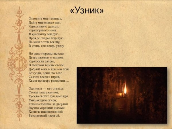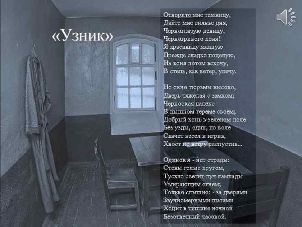 Иллюстрация к стихотворению Лермонтова "Узник" представляет собой визуальное отражение главных тем и настроений произведения. Картина передает атмосферу трагедии, одиночества и утраты свободы, которые пронизывают строки поэта. В центре изображения можно увидеть узника, плененного железными решетками, символизирующими его заключение. Его лицо выражает глубокую печаль и отчаяние, что подчеркивается мрачной цветовой гаммой и холодными оттенками. Фоном служит безжизненная и затерянная во времени тюремная камера, которая создает ощущение замкнутости и изоляции. Иллюстрация передает не только физическое состояние узника, но и его внутренний мир, полный страдания, скрытых эмоций и потери надежды. Она помогает зрителю в полной мере осознать глубину и силу слов Лермонтова, проникая в душу произведения и вызывая размышления о важности свободы и ценности каждого мгновения в нашей жизни.
