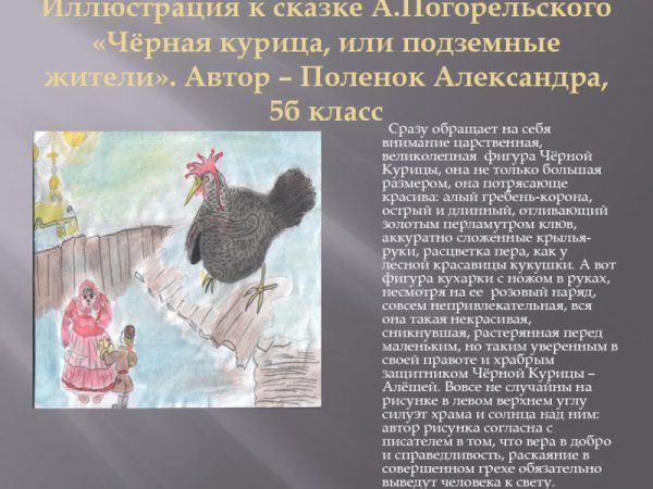 Иллюстрации к произведению "Черная курица Погорельского" являются незаменимым элементом этого знаменитого романа. Они великолепно дополняют и расширяют текст, создавая визуальное представление о персонажах, событиях и атмосфере произведения. Благодаря таланту художника, каждый образ оживает на страницах книги, позволяя читателю более глубоко погрузиться в мир романа. Каждая иллюстрация тщательно проработана и передает эмоции героев, их внешность, настроение и окружающую обстановку. Иллюстрации становятся своеобразным окном в историю романа, позволяя визуализировать происходящее и углублять впечатление от чтения. Безусловно, иллюстрации к произведению "Черная курица Погорельского" придают ему особую привлекательность и делают его еще более запоминающимся для читателя.