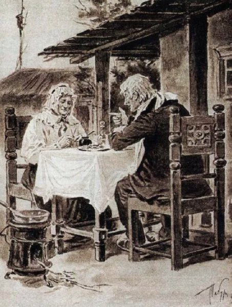 Иллюстрация к произведению "Старосветские помещики" является визуальным отражением жизни знатных помещиков, проживающих в дореволюционной России. На рисунке можно увидеть изысканную атмосферу старых поместий, их роскошные интерьеры, украшенные драгоценными предметами и произведениями искусства. Эта иллюстрация призывает погрузиться в мир старинных усадеб, где проживали образцы высшего общества, со своими особыми традициями и обычаями. Она позволяет читателю окунуться в эпоху, полную изящества и элегантности, и насладиться интригующей атмосферой старосветской жизни.