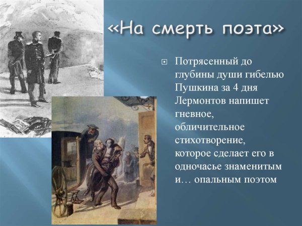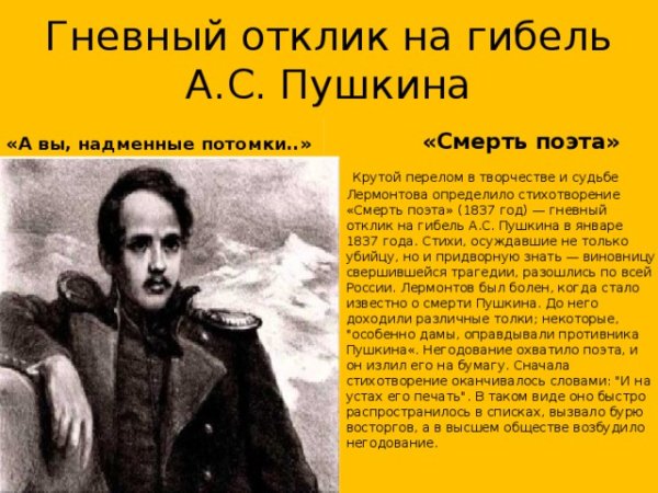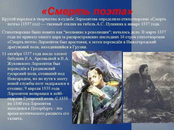 Иллюстрация к стихотворению Лермонтова "Смерть поэта" является важной частью визуального представления этого знаменитого произведения. Она помогает передать глубину эмоций, которые пронизывают стихи поэта. Иллюстрация может воплощать различные сюжетные моменты, символические образы и настроение произведения. Она может отображать самого поэта, его одиночество и мрачную судьбу, а также формировать особую атмосферу трагической потери и непонимания. Визуальный элемент и текст взаимодействуют, чтобы создать полное и уникальное впечатление от стихотворения "Смерть поэта" Лермонтова.