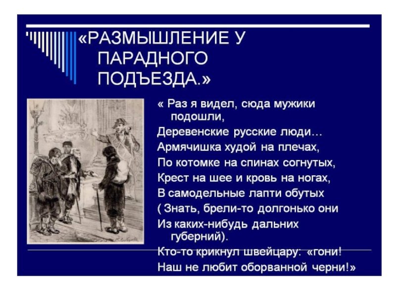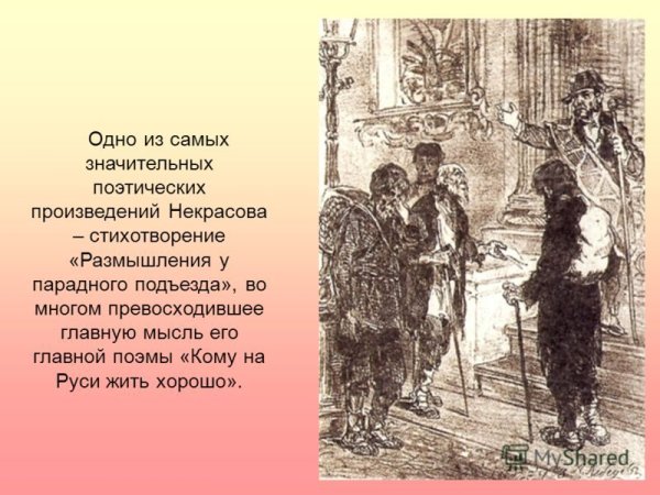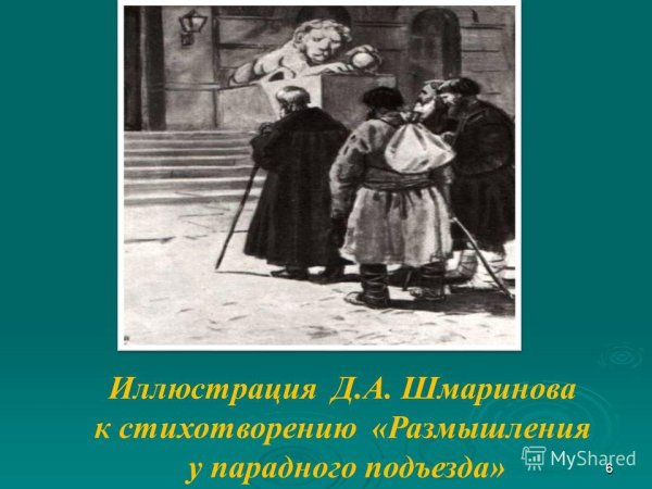 Иллюстрация к произведению "Размышление у парадного подъезда" является воплощением тонких эмоций, проникновенности и глубины мыслей. Она переносит зрителя в мир внутренних переживаний, где каждая линия, цвет и деталь имеют свое особое значение. Стремительно разрушающиеся стены, изуродованные временем, символизируют хрупкость и уязвимость человеческой судьбы. В то же время, невероятное благородство и достоинство образа героя на фоне этой декадентской картины заставляют задуматься о ценности жизни и неизбежности изменений. Иллюстрация к произведению "Размышление у парадного подъезда" – это искусство, способное поразить и пробудить самые глубокие чувства и мысли у зрителя, оставив след в его душе навсегда.