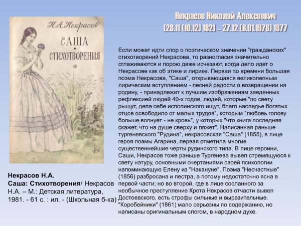 Иллюстрация к стихотворению «Саша» Николая Алексеевича Некрасова – это визуальное представление, которое сопровождает и дополняет текст произведения. Эта поэтическая композиция рассказывает о судьбе мальчика Саши, его трудностях и надеждах. Иллюстрация может отражать разные эпизоды и настроение стихотворения: от изображения бедного дома, где живет герой, до ярких картины природы или символических элементов, передающих смысл произведения. Используя различные художественные приемы и техники, иллюстратор создает образ, который помогает зрителю лучше понять и почувствовать суть и глубину стихотворения «Саша».