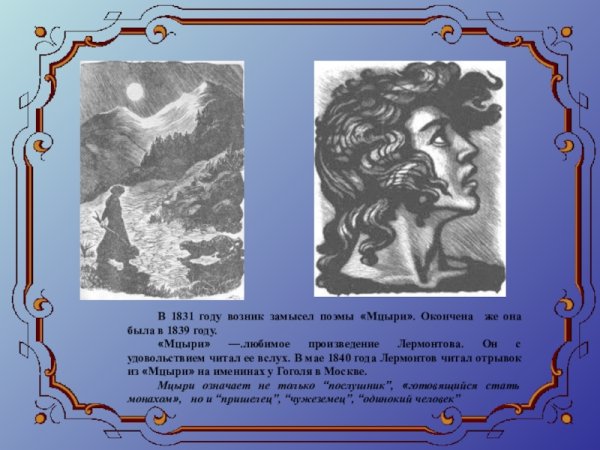 Иллюстрация к знаменитому стихотворению Мцыри А.С. Пушкина является важным элементом, который помогает погрузиться в атмосферу произведения и увидеть его с новой, более наглядной стороны. Она передает настроение и эмоции героев, а также отражает ключевые сюжетные моменты. Иллюстрация может быть выполнена в различных техниках: от классического рисунка до современной компьютерной графики. Главное, чтобы она передавала глубину и мистическую атмосферу поэтического произведения, раскрывая его тайны и загадки. Это позволяет читателю проникнуться смыслом стихотворения и визуально представить события, описанные в нем. В результате, иллюстрация к Мцыри становится неотъемлемой частью полного восприятия произведения, создавая единый художественный образ, объединяющий в себе слово и изображение.